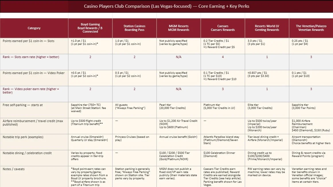 If you’re judging a players club specifically through the lens of a video poker player, a lot of it comes down to this: how much value do you earn per dollar of VP coin-in, and how quickly the program turns that into stuff you actually value (free play, food, rooms, trips, and free parking).